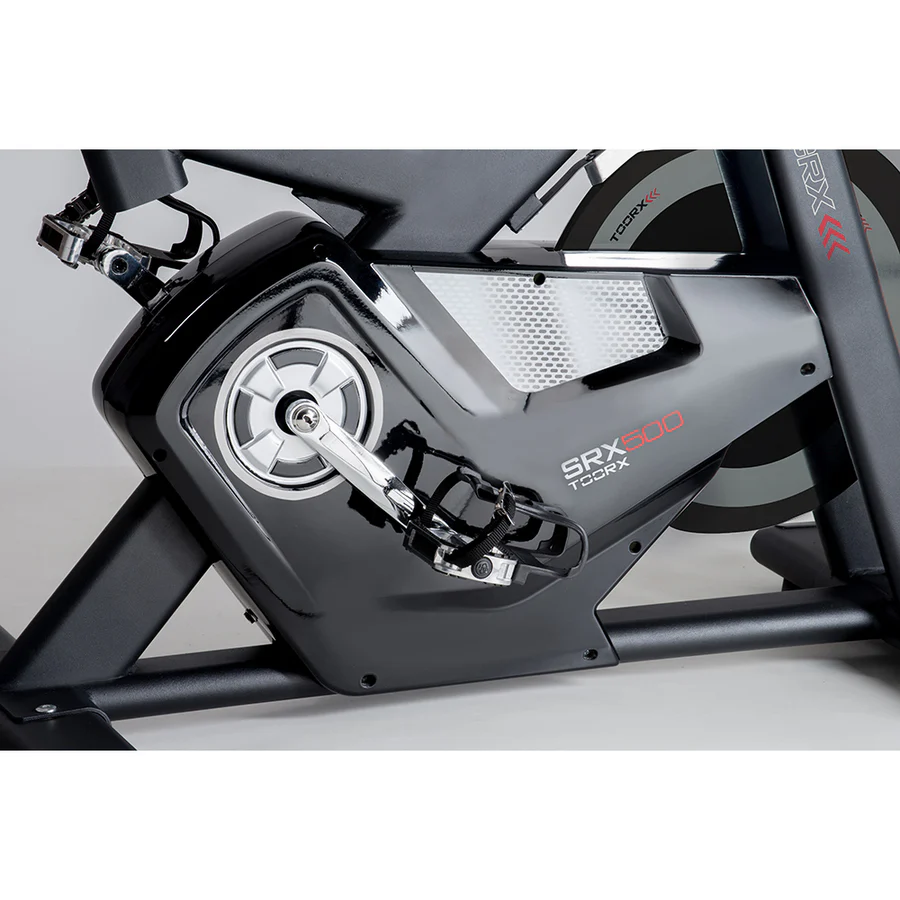 La Gym Bike SRX 500 rappresenta il top di gamma della Chrono Line. È dotata di un volano bilanciato da 24 kg lavorato CNC e di trasmissione a cinghia con pignone fisso.