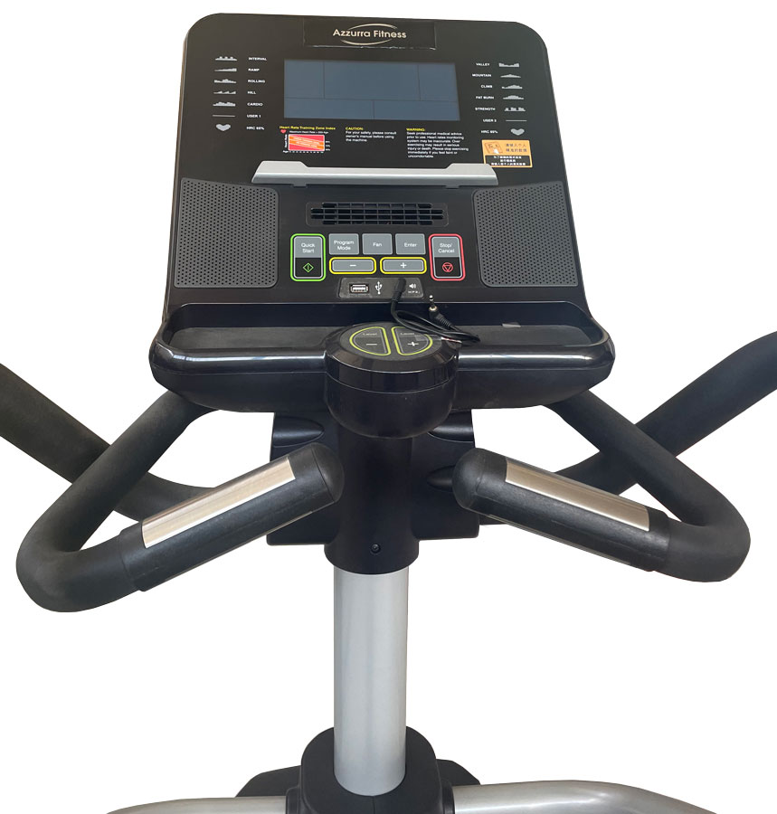 Sul display è possibile visualizzare le informazioni riguardanti l’allenamento come il tempo, la distanza, le pulsazioni, le calorie e la velocità. Sulla consolle sono presenti dei tasti di selezione rapida oltre il ricevitore per fascia cardio integrato per il monitoraggio del battito cardiaco.