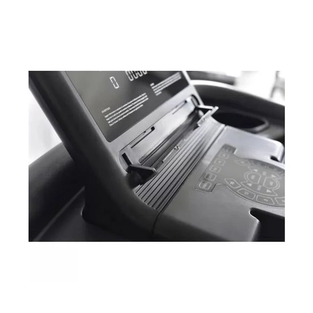 Il display consente di monitorare tempo, distanza, velocità, calorie e pulsazioni. La frequenza cardiaca può essere rilevata tramite i sensori manuali Hand Grip oppure con la fascia cardio inclusa.